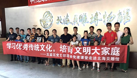 五监区党支部的党员、入党积极分子携带家属在北海贝雕博物馆讲解人员带领下,兴致勃勃参观贝雕馆。大家详细了解了贝雕文化的历史传承、发展过程;小朋友在家长的指导下体验了贝雕的制作过程。不少人感慨说,贝雕艺术非常美,北海的传统文化太引人入胜了。这一次学习传统文化之旅,大家受益匪浅。
