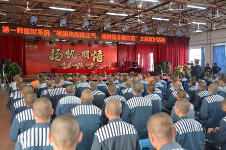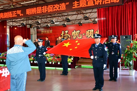宣讲结束,监狱组织在场全体民警与服刑人员面对国旗庄严宣誓,并开展“明辨是非、积极改造、”的大签名活动。