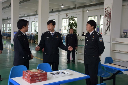2017年4月,高涛局长对汉中监狱规范化管理情况进行了实地视察指导。视察过程中,高涛局长充分肯定了汉中监狱新一届党委班子组建以来在监狱安全管理方面取得的成绩,对汉中监狱推行的“罪犯矛盾排查化解”、“车间安全员”、“车间文化休息区”、入监教育“忏悔室、洗礼室、规范化训练室”等安全管理再造措施以及违禁品治理工作给予了高度的评价。