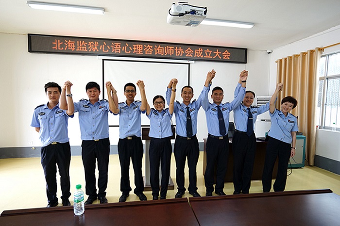 4月28日上午,在监狱党委的关怀下,在心理学爱好者的殷切期盼和共同努力下,北海监狱心语心理咨询师协会在监狱教育中心正式举行成立大会。副监狱长刘正高、政治处主任杨凯出席会议,监区领导、心理咨询师、心理学爱好者共35人参加。会议由教育改造科科长罗小贝主持。