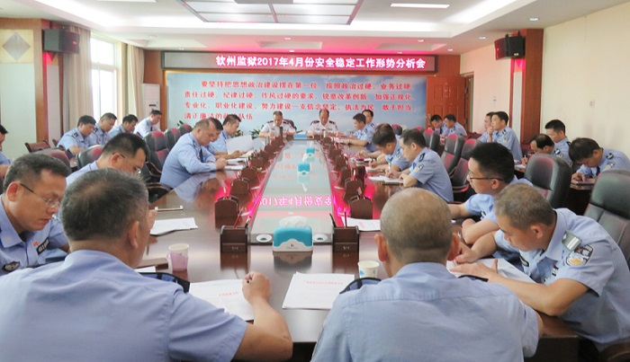 近日,钦州监狱召开2017年4月份安全稳定工作形势分析会,详细传达广西区监狱管理局2017年1季度监管改造工作实施意见,并研究部署下一阶段工作。
