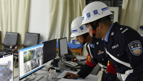 有几处摄像头不清晰,有一个摄像头位置不准,他们一一将情况做了记录,并把这几个地方列为优先督察地点。