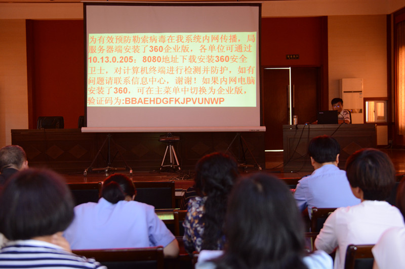 培训紧紧围绕当前信息化发展新形势新情况新特点及场所工作实际展开。培训过程中,该所信息中心工作人员做了精心准备,积极采取理论讲解、PPT演示、互动交流、现场操作演练等方式方法,重点讲述了如何防范“勒索病毒”、如何确保信息安全、手机电子相册制作技巧、体检宝软件的应用、手机与电脑之间如何相互传输文件、云盘的用途及使用方法、电脑运行缓慢的原因分析及处理办法、打印机常见故障等内容。整场培训,贴合实际,重点突出,既有理论层面的灌输,又有实践方面的探索,使大家普遍接受了一次信息化新业务新技能的充实与拔高,收到较好的培训效果。