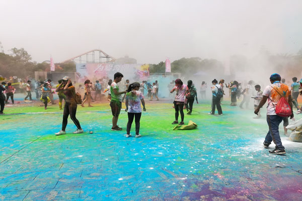 上午8点30分,桂中监狱徒步协会部分会员与千余名奔跑者难掩激动的心情,早早地齐聚雀儿山公园进行签到和热身运动,在简短的启动仪式后,10点整彩虹跑正式开跑。跑者们按规定线路奔跑,每到一个签到点,跑者们会被路边不同颜色的彩色粉轮番轰炸,跑完所有的签到点,跑者们的身体如同调色板一样色彩缤纷。跑者们在彩色粉末中尽情奔跑,感受这项时尚活动带来的魅力,现场一片欢声笑语,大家在健身之余,切身体验到一场欢乐的色彩盛宴。