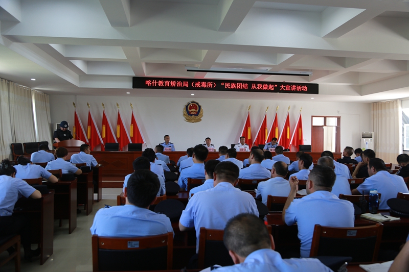 为深入贯彻落实习近平总书记系列重要讲话精神特别是关于新疆工作的重要指示精神,贯彻落实习近平总书记参加十二届全国人大五次会议新疆代表团审议时的重要讲话精神,根据新疆维吾尔自治区教育矫治局(戒毒管理局)关于开展“民族团结 从我做起”大宣讲实施方案要求,喀什教育矫治局(戒毒所)认真贯彻落实上级部署,立即启动“民族团结 从我做起”大宣讲活动,党委副书记、政委艾力哈木・吐孙同志和党委委员、政治处主任马光辉同志率先宣讲,以上率下,积极推进活动进程。