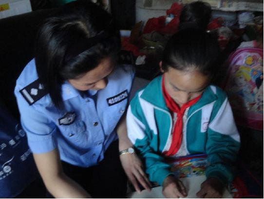 监狱干警在为孩子辅导课