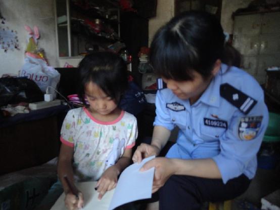 监狱干警在教孩子学写字
