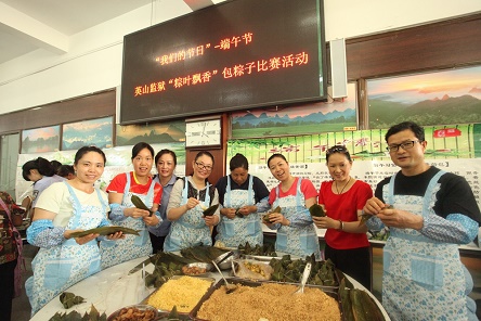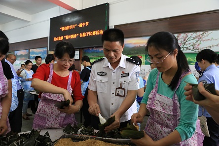 2017年5月27日下午,英山监狱职工食堂粽叶飘香、笑声阵阵,来自各部门的警察、职工、退休人员、社区居民100多人,以现场包粽子的方式,庆祝“我们的节日”―端午节。在活动现场,老同志充分展现娴熟的技巧、新同志认真学习传统的技艺,不一会,一个个外形漂亮的粽子呈现在大家的面前。参与活动的同志纷纷表示,传统的民俗活动,让大家感受到了传统文化的魅力,希望今后能够多开展,让更多的人能够体验。