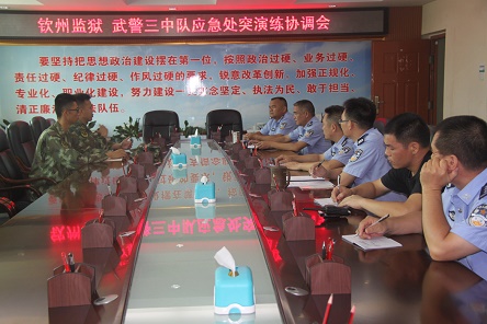 近日,钦州监狱与驻监武警召开应急处突演练协调会,旨在探讨如何提升监狱特警与驻监武警在维稳应急处突方面的协同作战能力,进一步巩固“三共”建设。