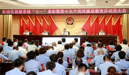 在中国共产党成立96周年之际,6月29日上午,新疆监狱系统召开大会,隆重表彰年度涌现出的先进基层党组织、优秀共产党员和优秀党务工作者,激励和鼓舞全系统各族党员奋发有为地学习宣传贯彻落实新疆工作总目标,为维护社会稳定和长治久安再立新功。