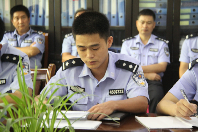 听取监狱跟班学习警察学习汇报。廖主任一行首先听取了选派柳城监狱警察的学习汇报。一监区唐袖刚、二监区曾毅、三监区韦长涯、四监区韦启兆、七监区汪涛等五名青年警察分别把自己在柳城监狱跟班学习的所见所闻,以及学习情况进行了汇报。五名青年警察表示在跟班学习过程中,收获很多,增长了见识,打开了工作思路,柳城监狱警察对工作认真负责的态度,从细节上加强服刑人员行为养成的“精细管理”等管理理念和管理模式都非常值得学习和借鉴,决心在今后的工作中,找准差距,不断提高工作能力和工作质量。廖主任简要阐述了监狱党委选派青年警察到柳城监狱跟班学习的目的。充分肯定五名青年警察学习成效。鼓励青年警察要多学习,多思考,取长补短,促进工作能力和工作水平不断提高。
