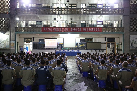 为维护监狱安全稳定,净化狱内改造风气,2017年7月20日19时许,柳州监狱狱内侦查科联合柳州市露塘地区人民检察院公诉科在柳州监狱十监区开展严厉打击狱内破坏监管秩序行为专项活动动员会。柳州监狱狱内侦查科科长覃家夫、露塘地区人民检察院公诉科副科长林立明以及十监区领导班子成员参加了此次活动,并给十监区全体服刑人员作了动员讲话。