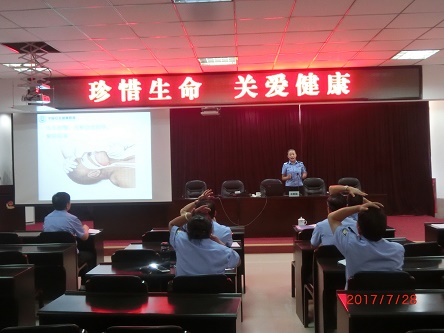 7月28日,为了宣传普及健康知识,培养健康素养,进一步提高全所民警职工的健康水平,营造健康场所,赤峰市戒毒所请中国安全健康教育中心的工作人员到所,对全体民警职工开展以“珍惜生命、关爱健康”为主题的健康知识讲座。