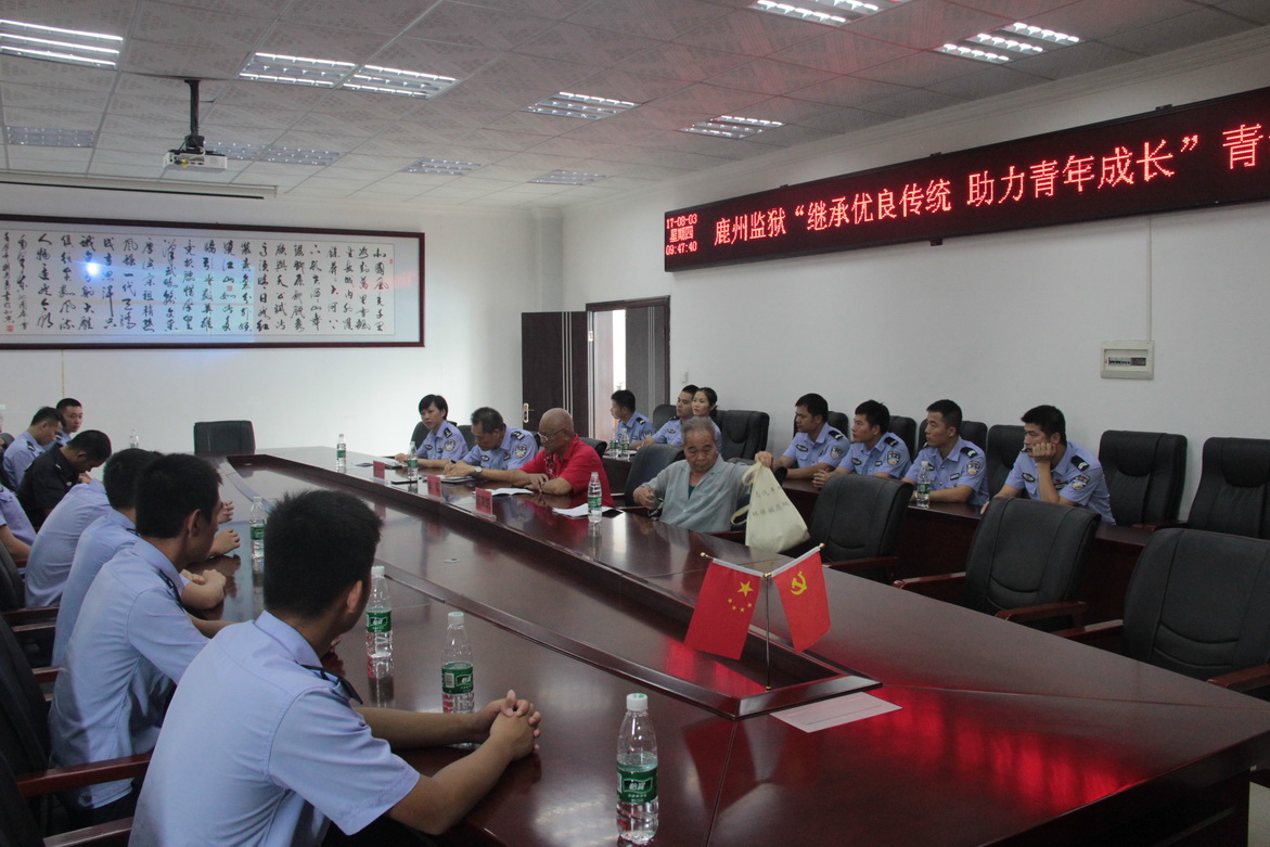 在会议室里,两位退休老干部分别从老一辈鹿州人在艰苦环境下如何努力奋斗、工作过程中经历的案件以及如何在岗位上争当能手的工作往事进行传统教育,勉励大家要珍惜今天的工作环境,踏实工作,为监狱事业奉献自己的一份力量。