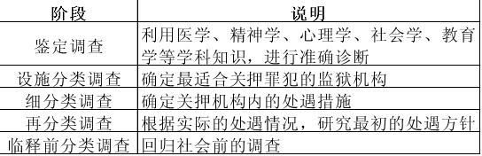 分类体系的基础就是“分类调查”。分类调查是根据医学、心理学、教育学、社会学等专业知识技能进行入监调查和再调查,必要时也会结合个别谈话、心理疗法等其他手段同步进行,其后根据调查结果,决定分类级别,制定劳动、教育、警戒等改造方针,并用于辅助转监、审查累进处遇、审查减刑假释、出监教育等。分类调查能够明确罪犯改造的入手点,继而制定最有效的改造方案,对于有效发挥机构效能、促进罪犯改造与回归社会都有不可欠缺的作用。