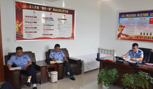 四大队大队长刘斌(中)汇报大队安全防控安排