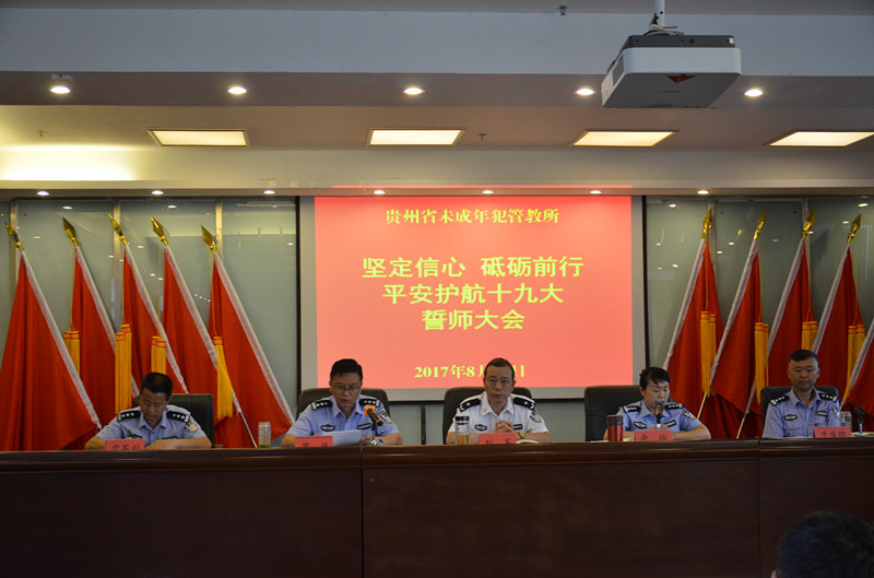 为喜迎党的十九大胜利召开,以决战决胜姿态全力保平安、全力保安全、全力保稳定。8月16日,贵州省未管所举行“坚定信心 砥砺前行 平安护航十九大”誓师大会,所党委班子成员出席会议,党委副书记、政委余玲主持,驻所武警、所特警队、各科室、管区等200余名民警参会,吹响了迎接十九大,全警保平安的号角。