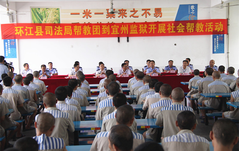 秋日的大地结出累累硕果,习习的秋风送来阵阵暖意。9月7日上午,应宜州监狱邀请,环江县司法局帮教团到宜州监狱对近200名环江籍服刑人员开展社会帮教活动,环江县司法局帮教团由环江县政府、司法局、乡镇司法所等一行17人组成,宜州监狱监狱长丘振华、副监狱长韦柳军以及监狱管教线民警参加帮教活动。
