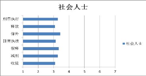 (三)关于刑罚执行公信力。公众对监狱依法执行人民法院生效刑事判决的程序性内容,包括收监、减刑、假释、对罪犯服刑期间又犯罪的处理、暂予监外执行、释放等工作的信任程度。