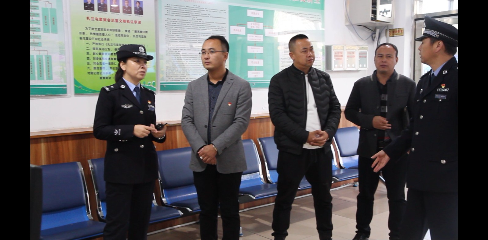 为加强青年文明号建设,推动监狱窗口工作提档升级。近日,扎兰屯团市委书记封鑫一行专程到扎兰屯监狱指导青年文明号创建及复检工作。党委委员、副监狱长田强,张茹,政治处副主任、团委书记于涛陪同。会见室主任王秋霞就青年文明号工作开展情况做了工作汇报。