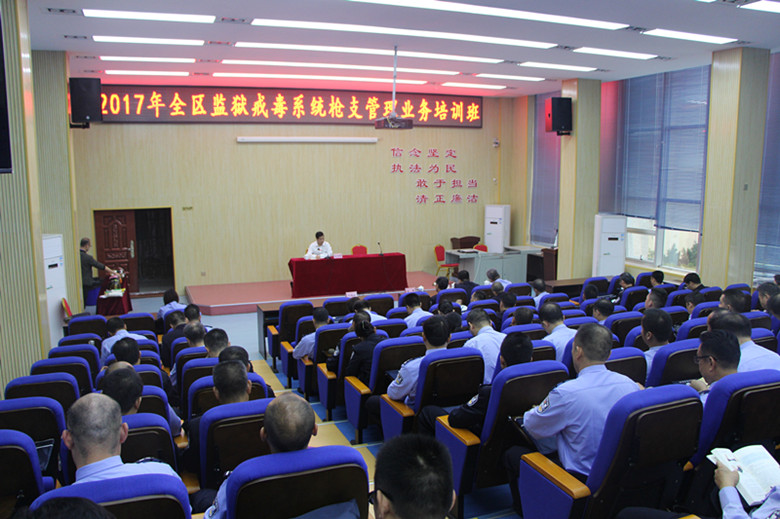 开班仪式上,张军副厅长在动员讲话中强调,当前全党全国各行各业,都在深入学习贯彻党的十九大精神,都在为全面决胜建成小康社会,维护社会稳定大局而努力奋斗。枪支弹药安全管理工作关系社会政治稳定大局,责任重大,任务艰巨。我区司法行政系统正在掀起学习党的十九大精神、开展“岗位练兵争当能手”活动热潮,举办本次培训班非常重要,非常及时。他要求监狱戒毒系统认真学习党的十九大精神,以习近平新时代中国特色社会主义思想武装头脑,指导实践,把十九大精神实质贯彻落实到枪支管理的日常工作当中,以这次培训为契机,树立安全意识,不断增强枪支管理工作的业务水平,确保枪支管理工作万无一失,为奋力开创我区新时代司法行政工作新局面,维护社会稳定大局和监所安全稳定做出积极的贡献。张副厅长对如何做好下一阶段的枪支管理工作提出四点要求:一是要坚持正确的政治引领,牢固树立安全稳定首位意识,以“治本安全观”为统揽开创监所工作新局面;二是要担起责任,切实履行工作职责,各级领导要提高认识,担起枪支管理第一责任人,把责任落到实处,层层抓好落实;三是要加强培训,突出业务精、能力强,以实战、管好用好为目标,不断提高枪支管理工作水平;四是要规范管理,抓好枪支管理各项制度建设,进一步推进枪支管理规范化建设。