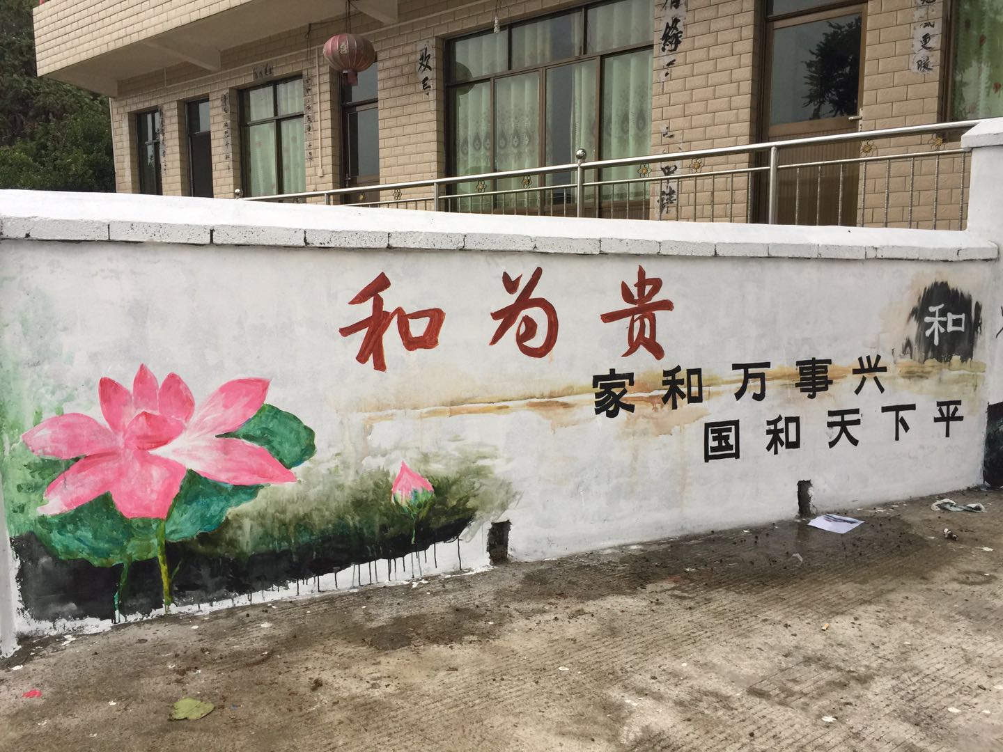 12:00,第一幅作品在未管所民警叶永泽的精心绘画下完成,引来了周边村民的围观,大家纷纷掏出手机来拍照。村民老王说:“这个文化墙很好看,还能教我孙子认字呢。”