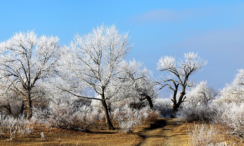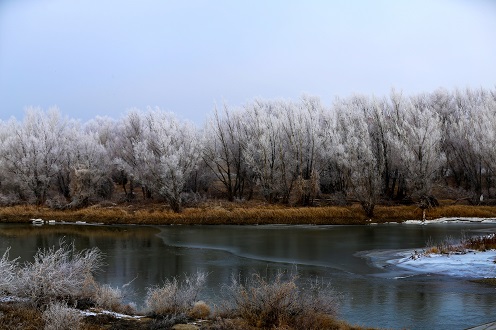 2017年11月18日,阿勒泰布尔津县迎来首场雾凇,本人有幸在初冬之时其记录下来与大家分享。