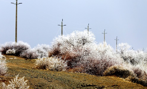 雾凇,俗称树挂,是低温时空气中水汽直接凝华,或过冷雾滴直接冻结在物体上的乳白色冰晶沉积物,是非常难得的自然奇观。