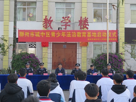 在启动仪式讲话中,柳州监狱党委委员、副监狱长李斯育代表监狱对与城中区政府联手打造青少年法治教育基地表示热烈的欢迎,在介绍监狱性质、职能等内容后,结合青少年身心特点,列举鲜活的失足例子,对到来的五十名城中区学生进行法治教育。城中区政府副区长周伟平则在讲话中对基地建成表示衷心的感谢,并阐述青少年法治宣传教育工作的重要性和共建青少年法治教育基地的意义。