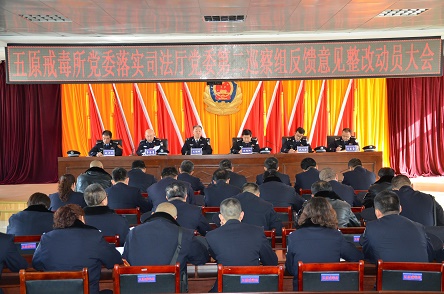 2018年元月31日,五原戒毒所召开落实司法厅党委第二巡察组巡察反馈意见整改动员会,全面安排整改工作,进一步压实“两个责任”,着力开展巡察整改工作。五原戒毒所党委领导班子,科(大队)级以上干警37人参加会议。党委委员、副所长杜向阳主持会议。