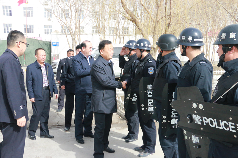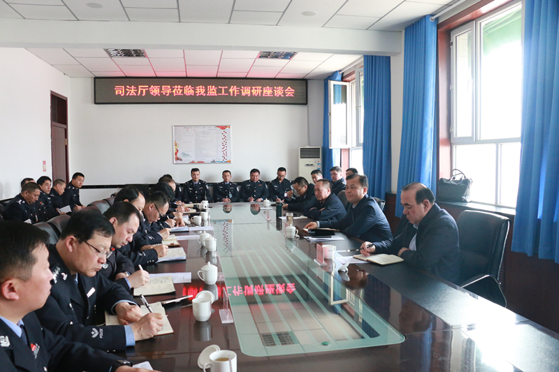 3月4日上午,自治区司法厅党委书记王江、监狱管理局纪委书记谷文生等一行四人到沙雅监狱检查指导工作。政委李刚、监狱长尼加提・尼亚孜等全体监狱领导陪同。