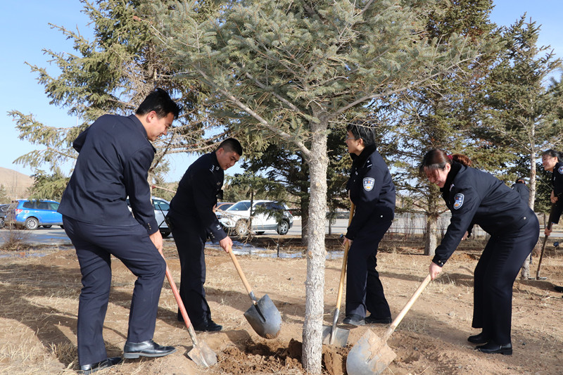 阳春三月,万物复苏。在第40个植树节到来之际,3月12日,锡林浩特监狱组织机关青年民警开展培绿、增绿义务活动,为监狱机关院落历年栽植的树木培土、浇水,助力绿化、亮化、美化机关建设,营造绿意盎然、空气清新、温馨舒适、环境优美的工作环境。