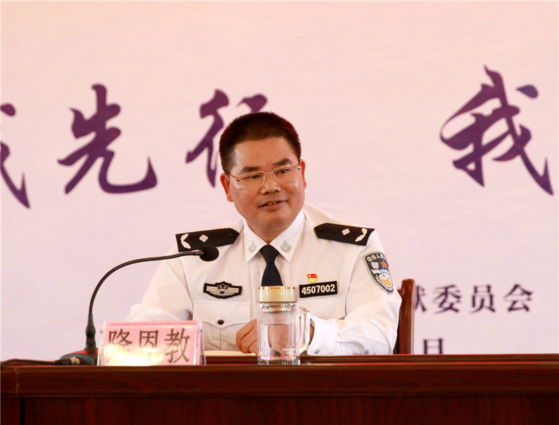 特警队队长覃启衡回忆了自己刚参加工作时,克服重重困难,主动请缨加练,第一次为集体赢得荣誉的经历和作为总指挥几次参加监狱系统大比武获得好成绩的经历,鼓励青年警察抓住每一次成长机会,把压力变成动力,把动力变成能力,把能力变成执行力。