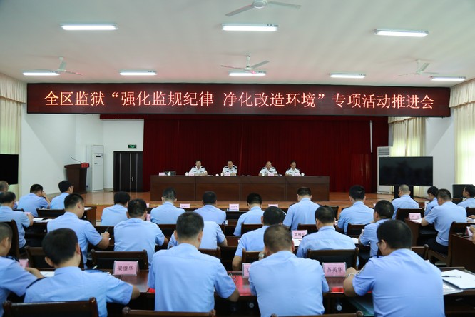 6月14日,全区监狱系统扫黑除恶专项斗争暨“强化监规纪律 净化改造环境”专项活动推进会在钟山监狱召开,总结全区监狱系统专项行动工作情况,深入分析专项行动面临的新形势和新任务,研究部署当前以及今后一个时期专项行动的工作思路和措施。