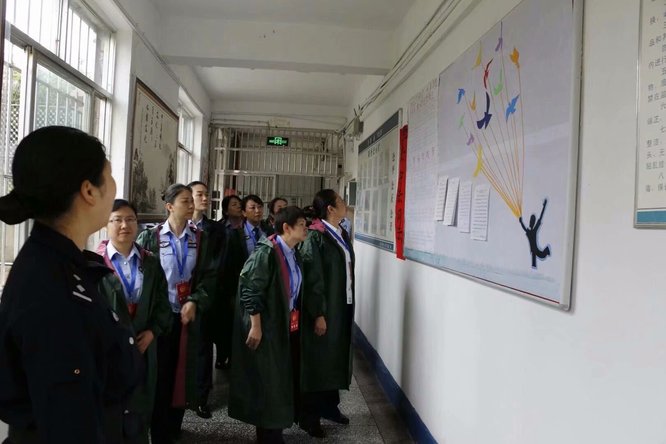 2018年6月20日上午7:40分,第一批来自局机关各处室的21名女警统一着装、乘车出发前往女一监。中途没有任何停留,而是直达监区所在区域。到达监房门口,天空一直下着淅淅沥沥的小雨,仿佛是为能否顺利完成本次体验活动增加了“难度系数”。据了解,监狱实行的是零物品进监,狱内不得打伞。机关女警无丝毫犹豫懈怠,快速穿上警用雨衣,通过安检进入监内,按监狱安排,被分成两个小组到七监区、八监区跟班学习。