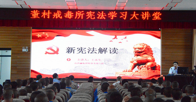 为增强戒毒人员的学法守法意识,进一步激发其戒治信心和动力,更好推进“法治场所”建设,近日,董村戒毒所特邀运城市政府首席法律顾问、瀛航律师事务所王永生主任来所为戒毒人员举办了一场“新宪法解读”专题辅导讲座。