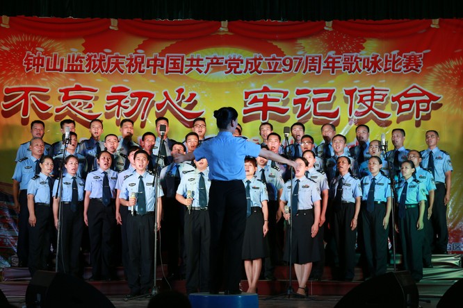 为深入贯彻党的十九大精神,加强爱国主义教育,庆祝建党97周年,唱响爱国主旋律,7月3日晚上,钟山监狱在大礼堂隆重举行“不忘初心 牢记使命”礼赞十九大爱国歌曲大家唱歌咏比赛,监狱、公司领导和400名警察职工以及驻监武警中队参加了比赛。
