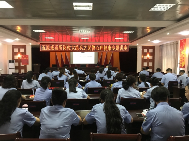 自五原戒毒所岗位大练兵开展以来,本着“干什么、学什么,缺什么、补什么”的原则,针对2018年易普思公司对民警进行的心理健康测试显现出来的职业压力、焦虑、抑郁等症状,五原戒毒所积极打造民警队伍的政治素质、业务素质、心理素质,积极向素质要警力,推动民警练就的过硬本领、服从性和执行力。近日,五原戒毒所邀请国家级心理咨询师、包头医学院副教授张丽娜到五原戒毒所开展《认识更好的自己——压力管理和情绪调节》知识讲座,五原戒毒所政治处组织,全体民警参加。