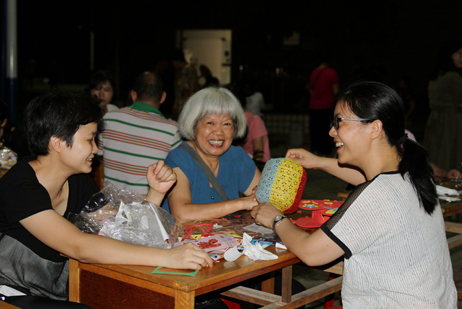 参与做花灯的有白发苍苍的老人,也有孩子蹒跚学步的孩子,老人们给大家讲过去的中秋回忆,孩子们则沉浸在动手的快乐中,花灯造型百变,有呆萌的小羊,灵动的小兔还有威武的黑猫警长……让孩子们爱不释手,现场其乐融融。