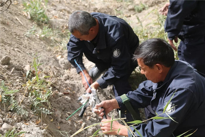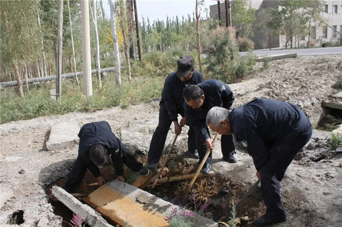 图中的民警叫陈川,是沙雅监狱基建办公室一名普通的工作人员。18日上午,工人打扫卫生时发现顶楼墙面渗水,水渍正迅速扩散,有可能蔓延至监狱中央机房,于是立即电话联系陈川。正在数公里以外的工地忙碌的陈川接到电话后,冒着雨夹雪,迅速赶回机关楼,顾不上擦干头发,直奔顶楼查看渗水情况及原因。经过查看,发现楼顶上堆积的树叶、泥土堵塞了排水口,导致雪水、雨水淤积。当务之急必须立刻疏通排水口,否则积水进入机房,后果不堪设想。楼下的民警实时报告渗水情况,楼顶的陈川和同事高飞积极想办法,可是粗重的线圈将他们与排水口阻隔开来,携带的工具也无法使用。当听到楼下大喊已经开始滴水时,陈川下意识地钻到线圈下面,用手把淤泥、树叶挖开,让积水先顺着管道排出,再用手一捧一捧地将杂物清理干净。顾不上湿透的衣服,顾不上满身的泥土,陈川又匆匆赶往数公里以外的工地,继续忙碌着……