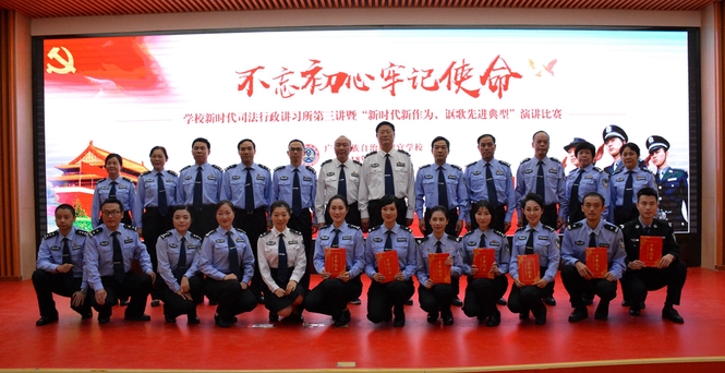 10月25日,广西警官学校在新建成的多功能会议室举行新时代司法行政讲习所第三讲暨“新时代新作为,讴歌先进典型” 主题演讲比赛活动。学校校长谢波等领导、全体教职工及学生代表共计300多人现场观看演讲比赛。