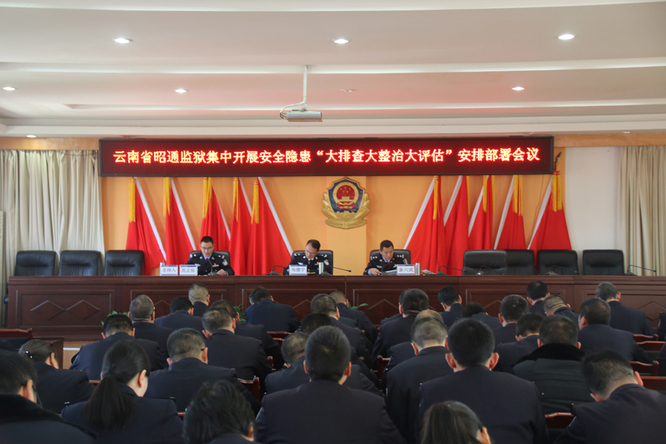 为认真贯彻落实司法部第五次调度电视电话会议精神,根据省监狱管理局关于在云南监狱集中开展安全隐患“大排查大整治大评估”专项活动的通知精神,11月8日,昭通监狱召开安全隐患“大排查大整治大评估”安排部署会议,监狱领导班子成员、各监区领导班子、分监区长、监区专职警察、机关各部门负责人、改造部门全体人员参加会议。