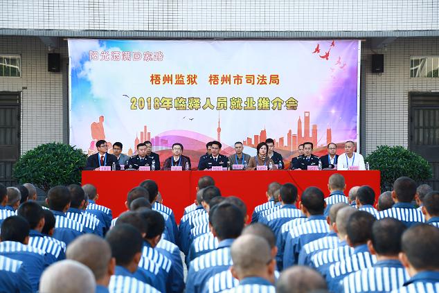举办2018年临释服刑人员就业推介会,是梧州监狱在国家促进就业的新形势下,积极履行司法职能,着力打造以政治改造为统领的“五大改造”新格局,践行监狱与市司法局签订的合作共建协议,努力实现监地共建和智慧监狱建设的重要举措。本次推介会规模大、规格高,监狱主要领导李监狱长、陈副监狱长、蒋副监狱长参加,自治区司法厅基层处、梧州市司法局等领导应邀出席,梧州市司法局派驻高新工业园区司法所、梧州市律师协会、企业代表等一同参加。推介会由陈副监狱长主持,李监狱长致辞,市司法局覃副局长讲话。