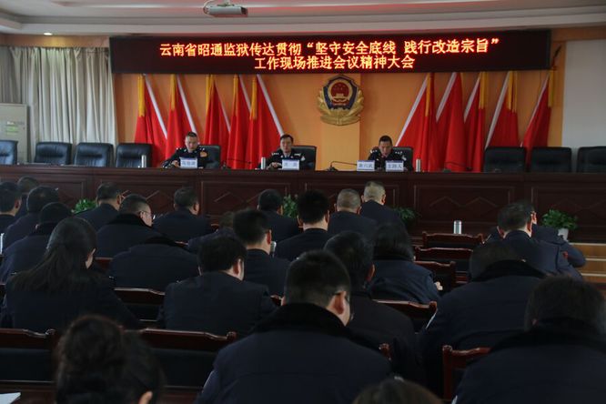 为认真贯彻落实2018年11月20日在云南省第一女子监狱召开的全省监狱“坚守安全底线践行改造宗旨”现场推进会议精神,在11月26日工作例会传达此次推进会精神的基础上,昭通监狱11月29日再次召开了专题会议进行了传达学习,并部署年底各项工作,确保监狱安全稳定。监狱领导班子,机关全体警察,基层部分警察近120人参加会议。