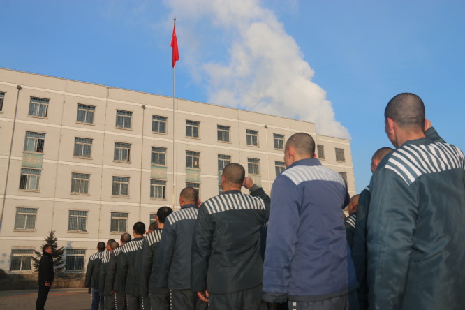 升旗结束后,服刑人员代表面对国旗引领庄严宣誓:“拥护宪法、敬畏法律、遵守监规、践行规范。认同党的领导、认同伟大祖国、认同民族文化、认同中国特色社会主义道路。接受五大改造、服从警官管理、认真参加学习、完成劳动任务。树五观、改恶习、知荣辱、明是非。以优异的改造成绩早日回归社会”……表达他们改过自新、重塑自我的决心。表示要把刑期变学期,努力学习一技之长,回归社会后做一个有益于社会、有益人民的新人,表达出了服刑人员热爱祖国、感激政府、渴望新生的一片真情。