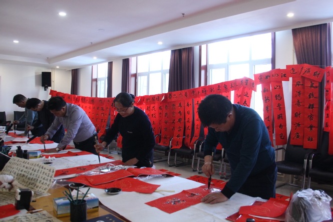 虽然天气寒冷,但书写现场暖意融融,书法家热情高涨,挥毫泼墨,一幅幅或苍劲有力、或飘逸灵动,散发着浓浓墨香的大红春联和“福”字展现在大家面前,为即将到来的春节增添了浓浓年味。活动现场共书写春联及福字300余幅,吉祥如意的春联、红红火火的“福”字,表达了书法爱好者对监狱民警职工美好生活的寄语。