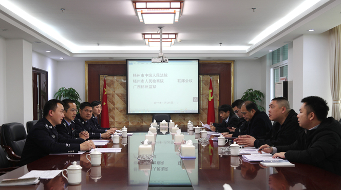 《广西监狱提请减刑假释工作规定》于2019年1月1日起施行。1月25日,梧州监狱邀请梧州市中级人民法院、梧州市人民检察院来监,召开三方联席会议,助推广西监狱减刑假释工作规定顺利落地,推进刑罚执行工作规范化进程。