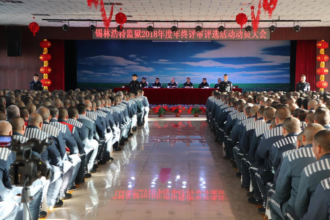 为了检验全体罪犯一年来的改造表现,客观全面准确地对罪犯进行奖惩,有效发挥评审评选工作对罪犯的激励作用,1月28日上午,锡林浩特监狱召开2018年度罪犯年终评审评选活动动员大会,副监狱长吴捍国主持会议,政委于德水,狱政、狱侦、法制、教育等科室负责人,各监区长、各监区执勤民警及全体罪犯参加会议。