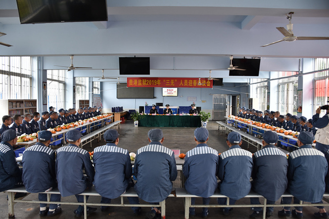 2019年2月1日,广西贵港监狱组织召开2019年罪犯“三无人员”迎新春座谈会,监狱值班领导出席会议,监狱60名“三无人员”罪犯代表参加座谈会。