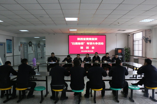 监狱扫黑办组织监狱扫黑除恶兼职成员及各监区副科以上领导召开扫黑除恶专项斗争业务培训会,详细讲解涉黑涉恶罪犯管理、专档专柜专人负责管理、涉黑涉恶线索管理等问题,广泛部署,覆盖全员,不分年龄,确保人人熟知扫黑除恶专项斗争应知应会知识。